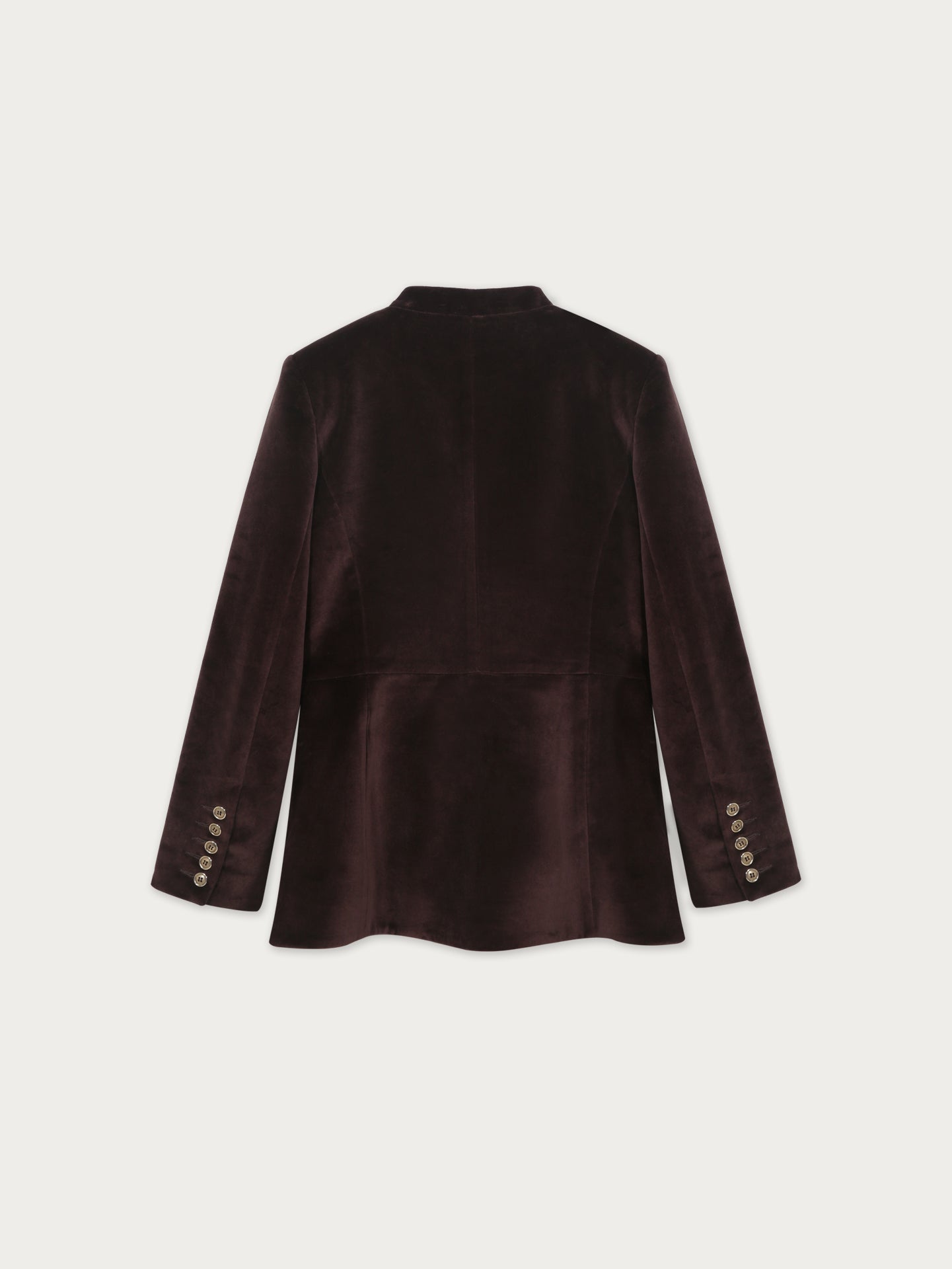 La textura del terciopelo realza la profundidad del color y proporciona una caída impecable, ideal para ocasiones especiales o para elevar estilismos cotidianos con un toque de distinción. Los botones decorativos, trabajados con detalle, completan esta pieza única.