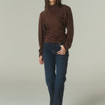 Una sofisticación absoluta define a la Blusa Alba en seda café. Confeccionada en seda de alta calidad, de textura suave, caída fluida y brillo natural.