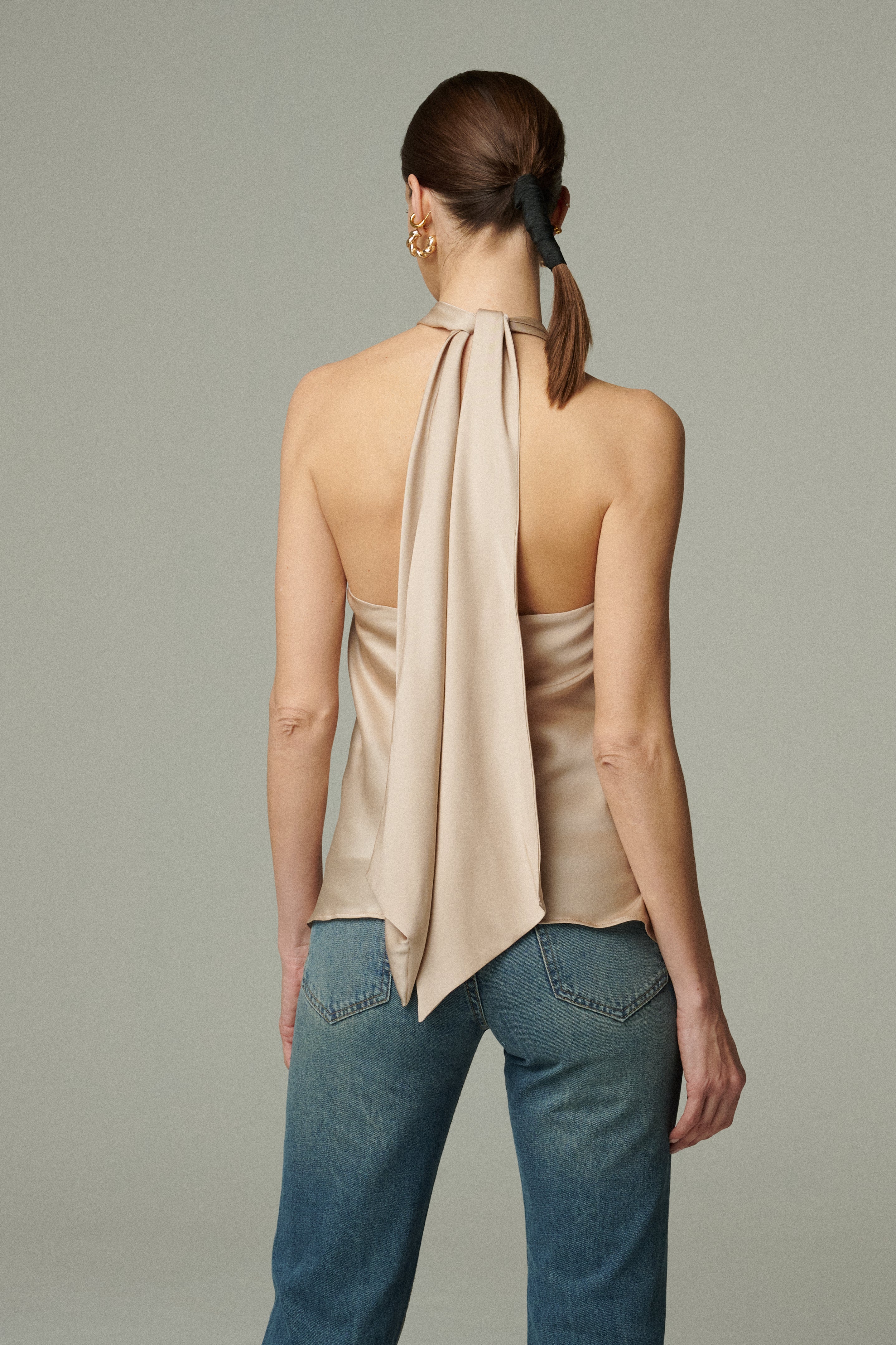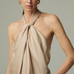 Nuestra Blusa Ibiza Seda Nude es un hit de la colección. Confeccionada en 100% seda de alta calidad la hace una prenda elegante y romántica que destaca por su delicado diseño. Tiene un escote limpio desde el cual nacen dos cintas largas que se amarran detrás del cuello, aportando un aire sofisticado y chic. Su color nude se mueve entre un beige y un suave palo convierte en una pieza versátil y atemporal, fácil de combinar tanto para ocasiones de día como de noche. Su caída ligera y textura fluida realzan la silueta con sutileza.