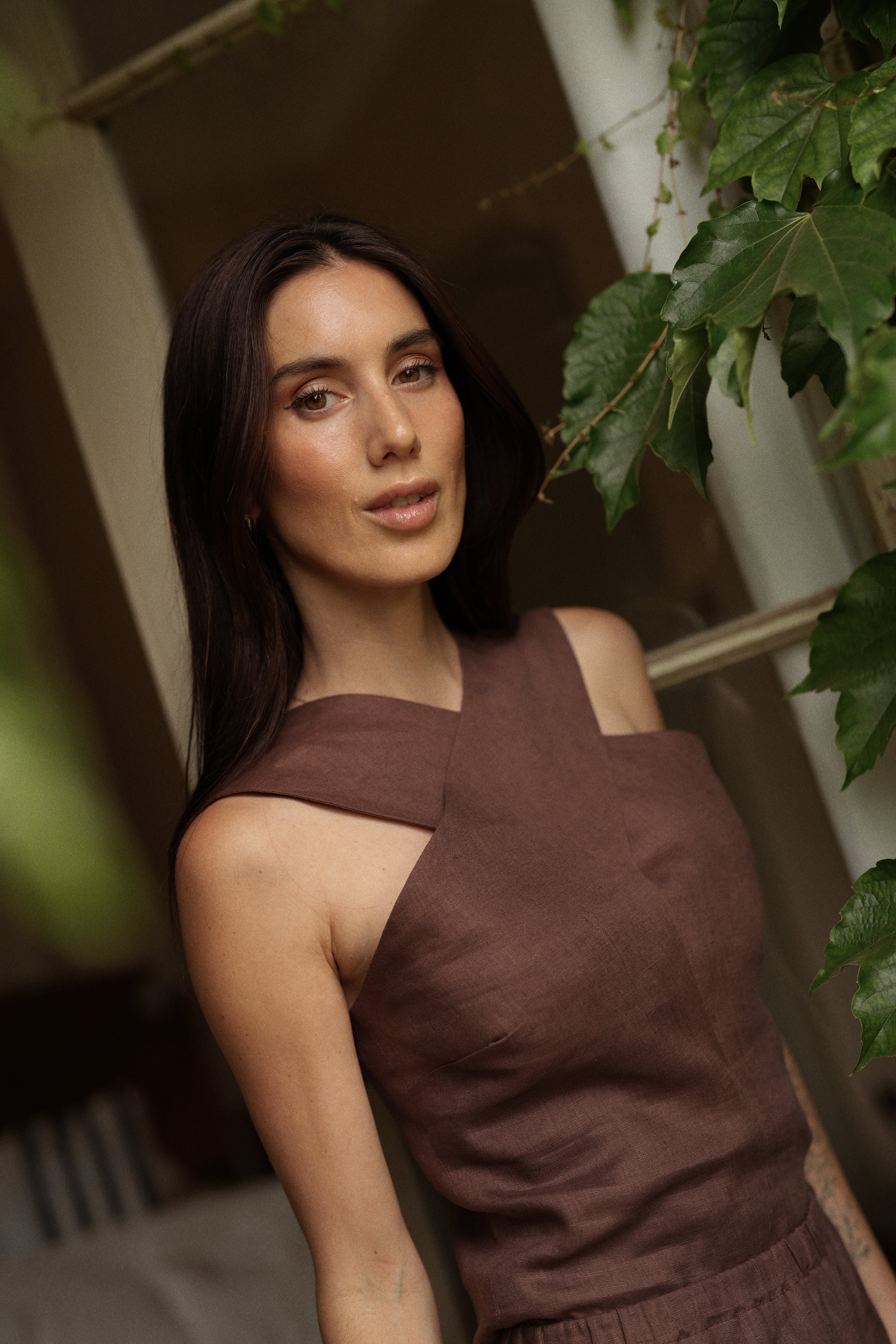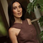 Nuestra Blusa York está confeccionada en 100% lino café, de escote halter atravesado por cintas anchas que generan un diseño geométrico distintivo. Una pieza fresca y original, donde la estructura del lino se encuentra con la geometría del diseño, logrando un efecto visual interesante y sofisticado. Ideal para elevar looks cotidianos y aportar un aire moderno con naturalidad.