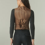 De silueta estructurada y líneas limpias, su calce acompaña el cuerpo con precisión, definiendo el torso de manera elegante. El escote en V alarga la figura, mientras los botones frontales y bolsillos discretos aportan un equilibrio entre funcionalidad y diseño. Su construcción permite integrarlo con facilidad en distintas combinaciones, aportando carácter y sofisticación a cada conjunto.