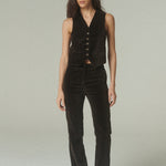 De silueta estructurada y líneas limpias, su calce acompaña el cuerpo con precisión, definiendo el torso de manera elegante. El escote en V alarga la figura, mientras los botones frontales y bolsillos discretos aportan un equilibrio entre funcionalidad y diseño. Su construcción permite integrarlo con facilidad en distintas combinaciones, aportando carácter y sofisticación a cada conjunto.