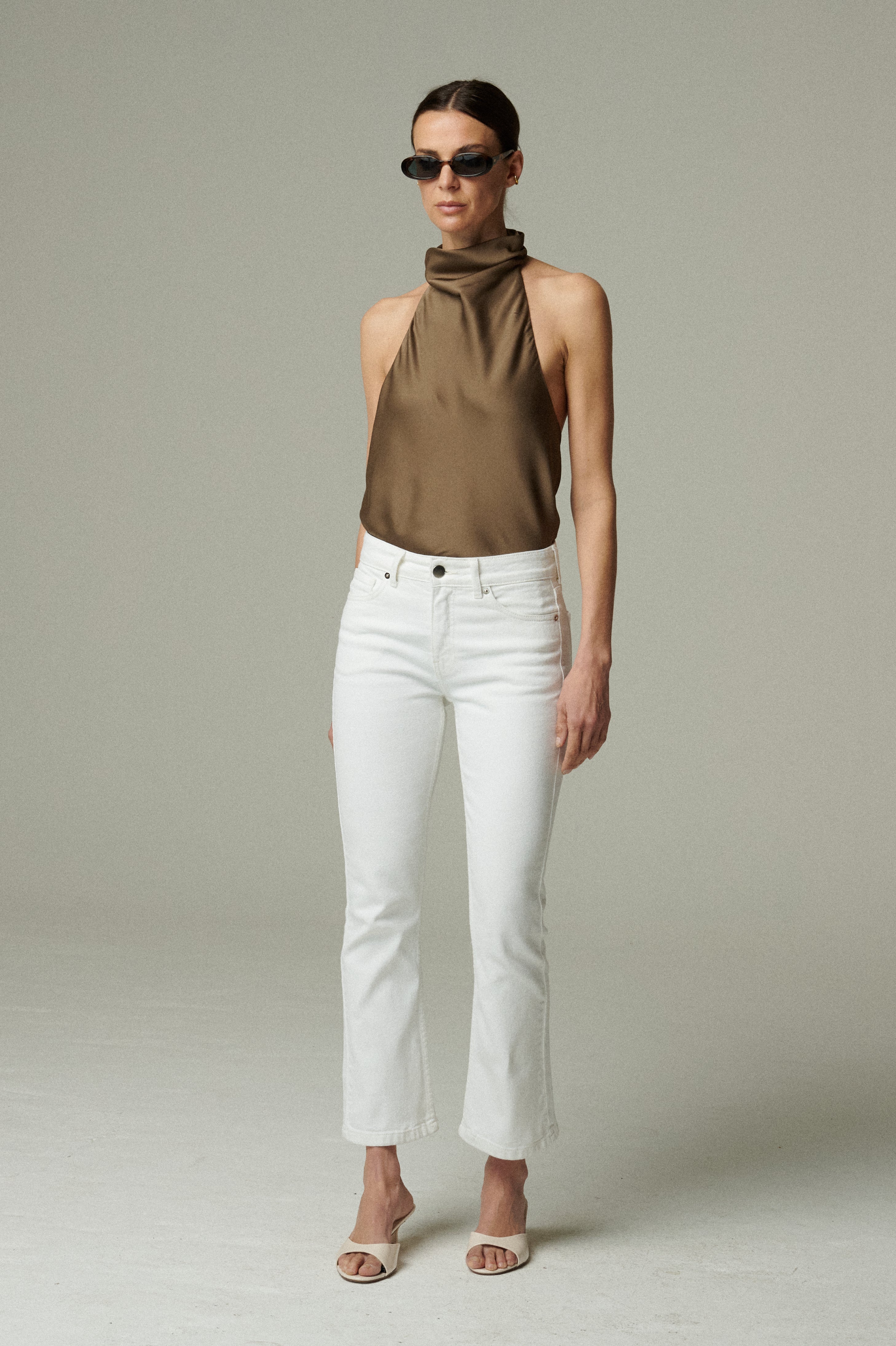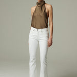 Nuestro Jeans Atenas, confeccionado en denim blanco elasticado de alta calidad, destaca por su silueta femenina y chic. Su tejido de baja densidad ofrece una sensación extra suave, garantizando comodidad durante todo el día. Un diseño favorecedor que suma estilo y versatilidad a tu clóset de verano.