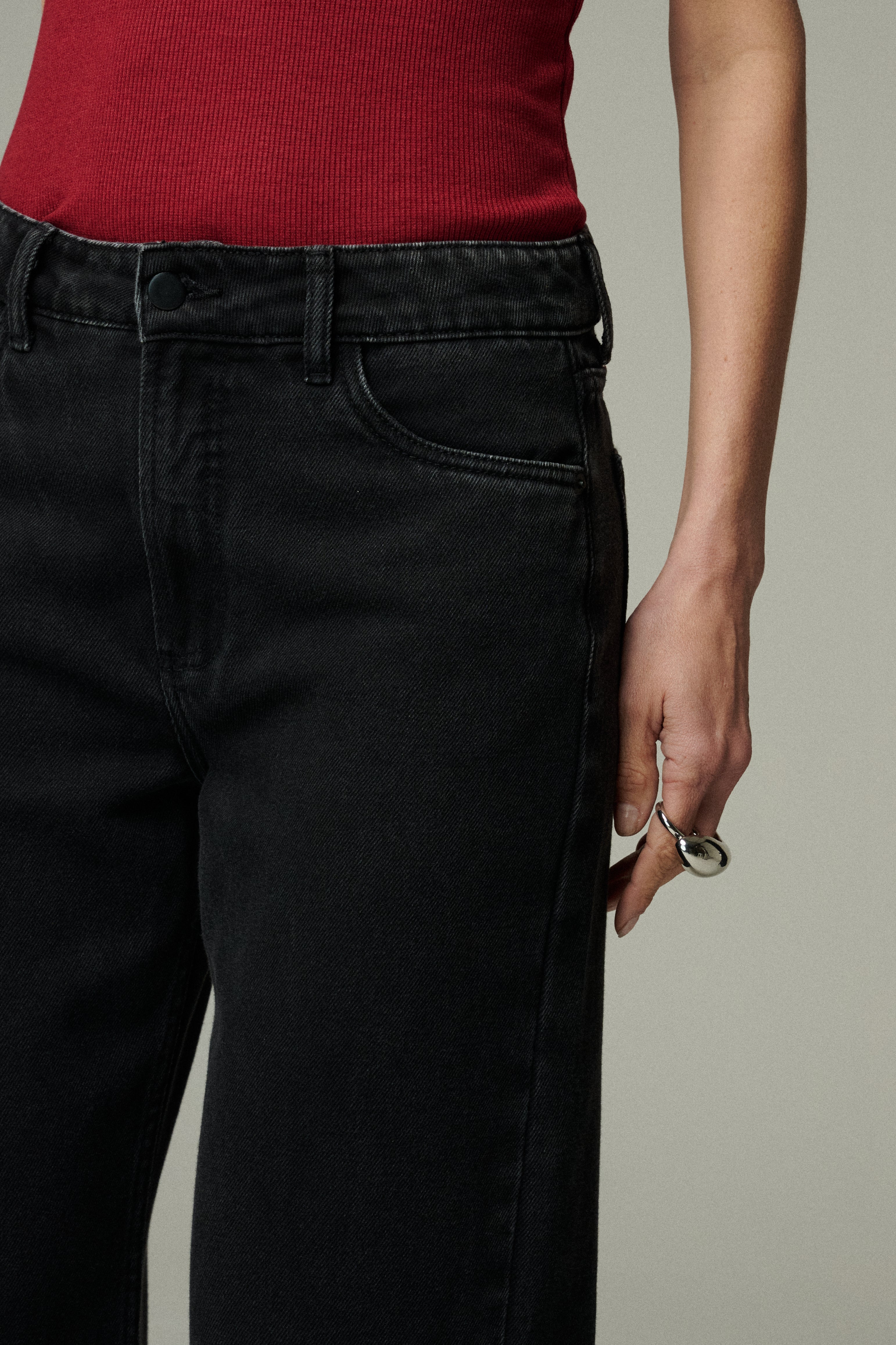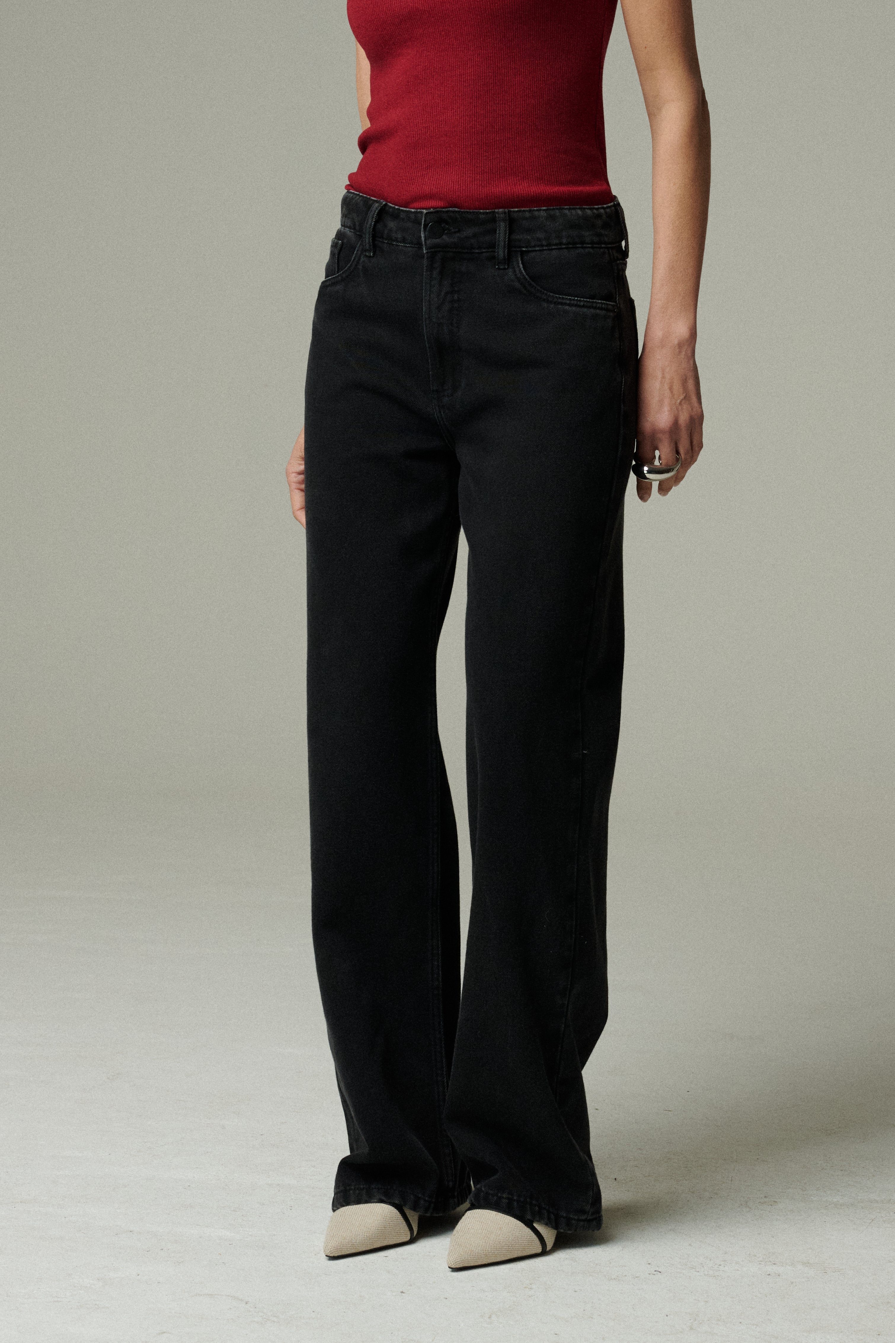 El Jeans Corfú es un modelo ideal para lucir un look relajado y chic. Confeccionado en denim de algodón negro, destaca por su versatilidad, comodidad y por combinar con todo. De tiro medio alto y corte de pierna recta, será un infaltable para el día a día.