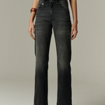 Nuestro jeans Kioto Gris, confeccionado en denim negro elasticado, presenta un corte entallado con tiro medio-bajo y una pierna recta que aporta una silueta elegante y moderna. Su lavado gris oscuro vintage y el pulido sutil en toda la prenda lo convierten en una opción atemporal. Este jeans favorecedor es perfecto para añadir estilo y versatilidad a tu closet de invierno.