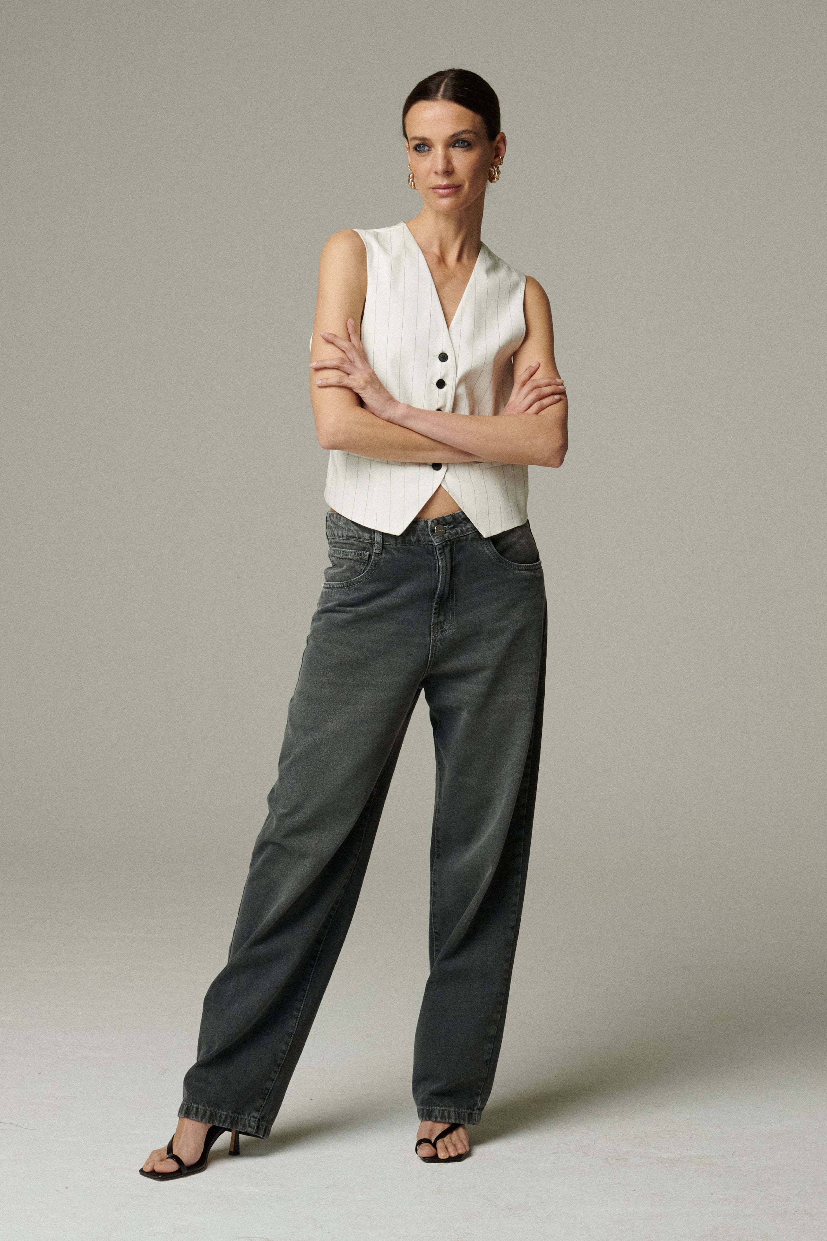 Nuestro Jeans Versalles Gris Claro, confeccionado en denim de algodón lavado, es un diseño oversize que ofrece una silueta relajada y moderna. De tiro medio-alto, destaca por su corte de pierna recta y su calce perfecto. Su color gris claro será un imprescindible en tu clóset de verano.