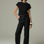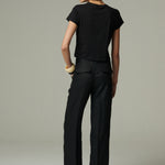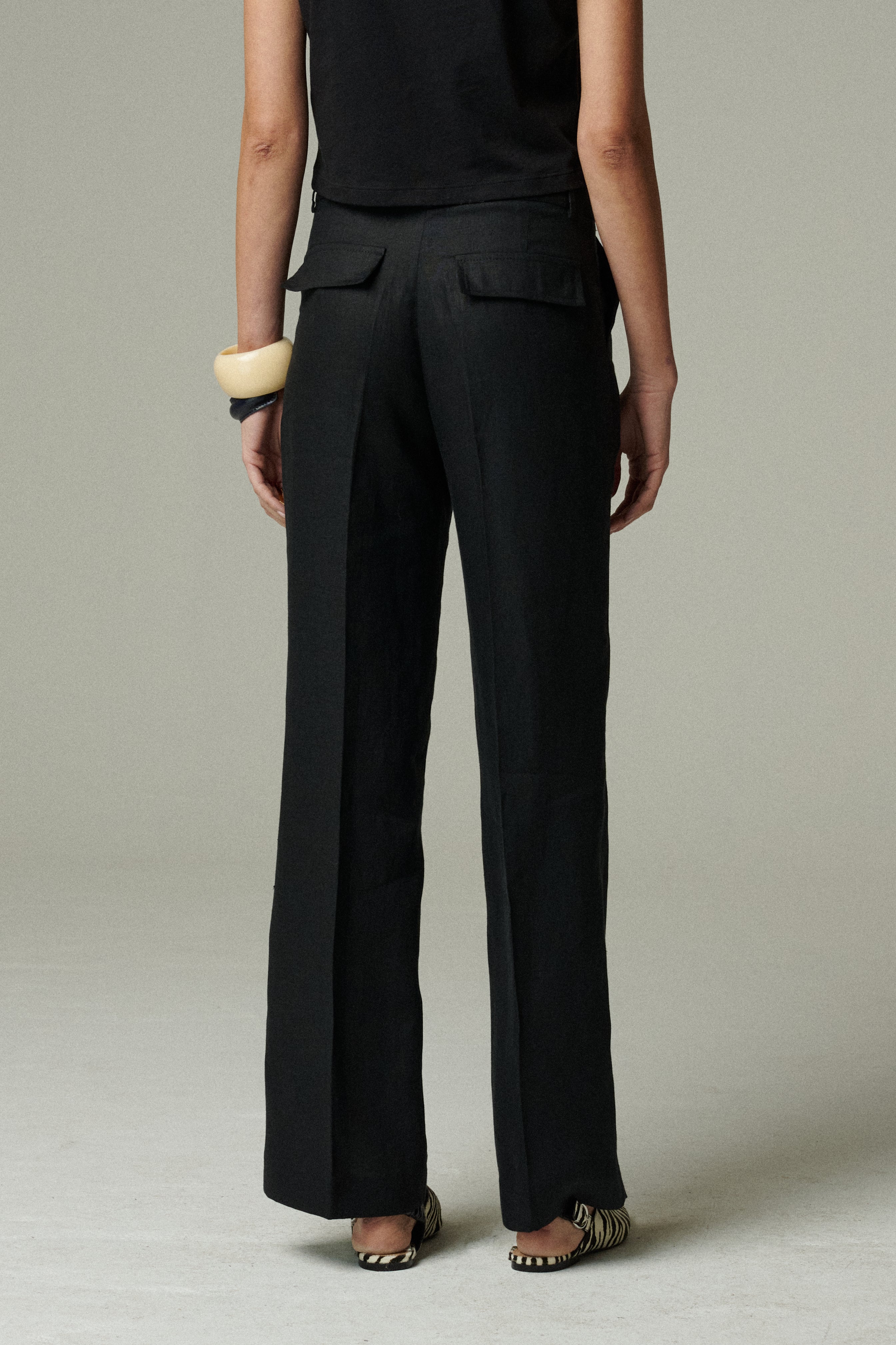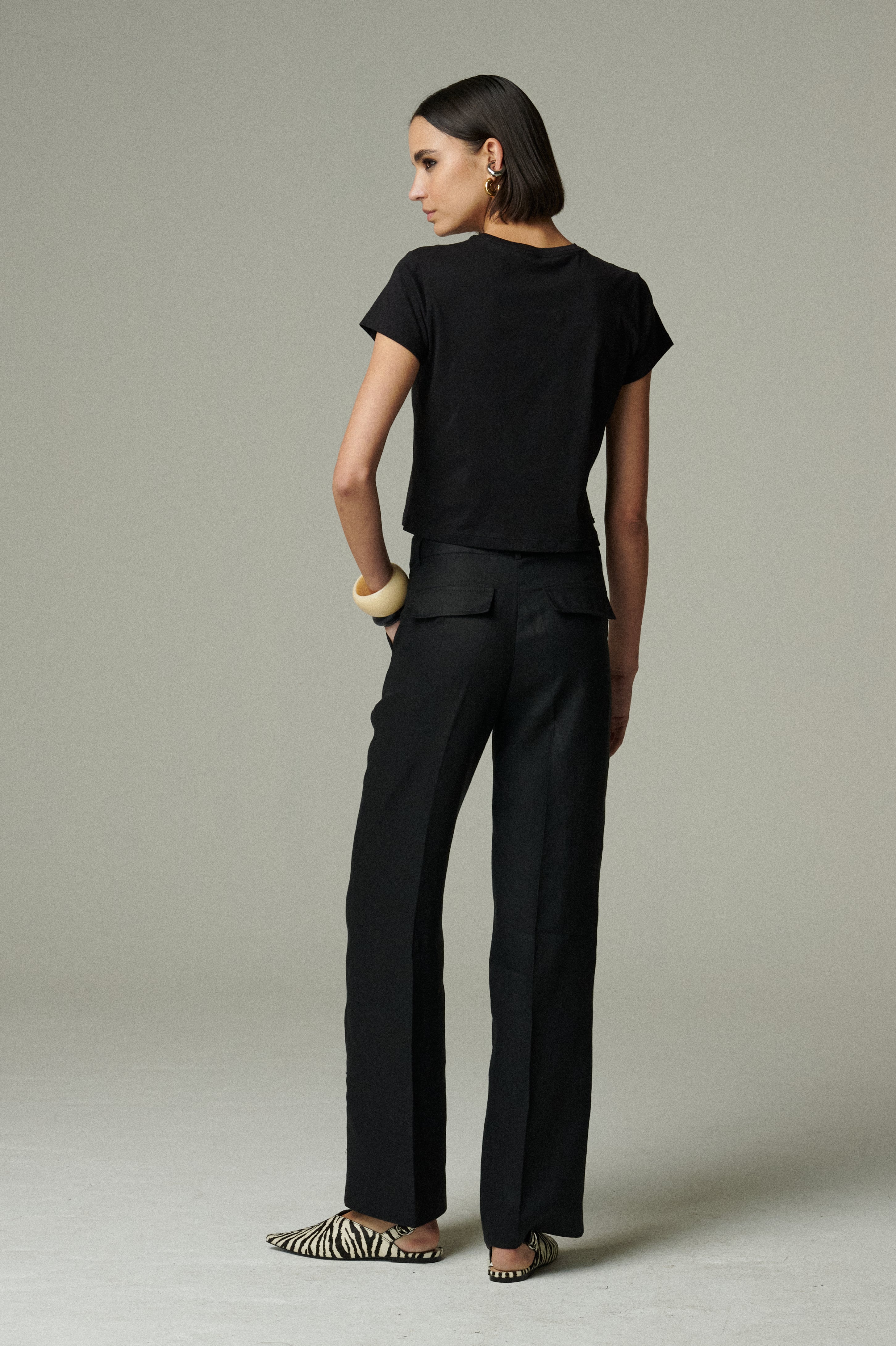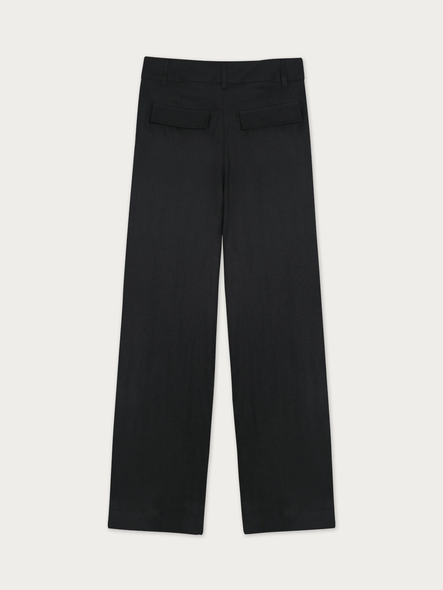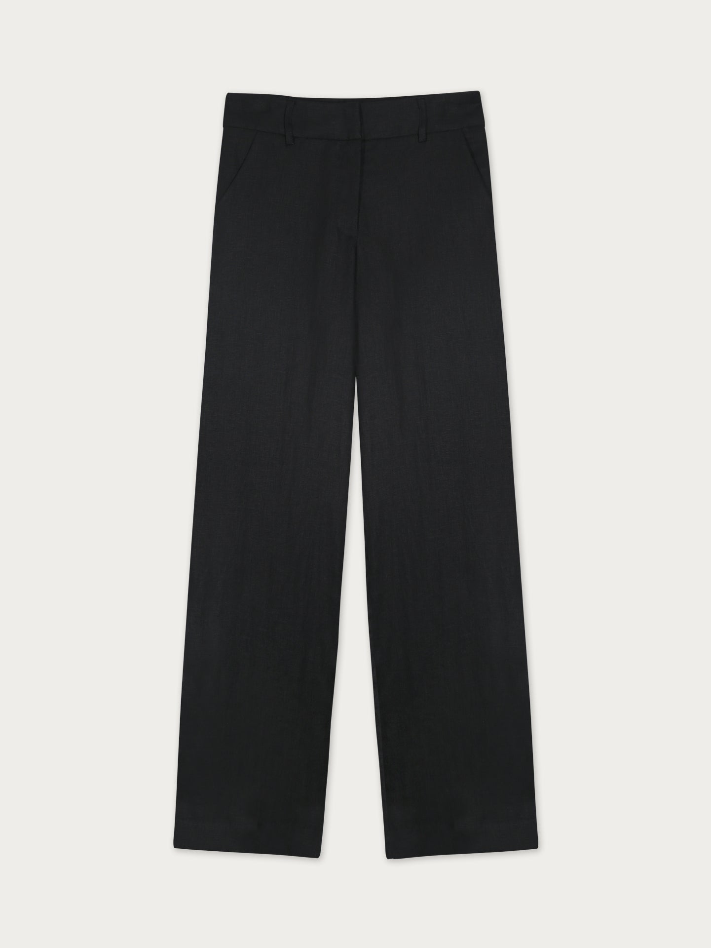 Nuestro clásico Pantalón Lalalou está confeccionado en lino negro de alta calidad. Está inspirado en la sastrería clásica, llevado al lino. Atemporal, fresco y elegante, pensado para ser un esencial de verano que eleva cualquier look.