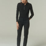 De tiro bajo y pierna levemente ajustada, su calce define la figura con precisión, proponiendo una línea estilizada y elegante. Su diseño de líneas simples pone el foco en la forma y el material, logrando una estética refinada y versátil.