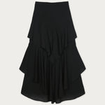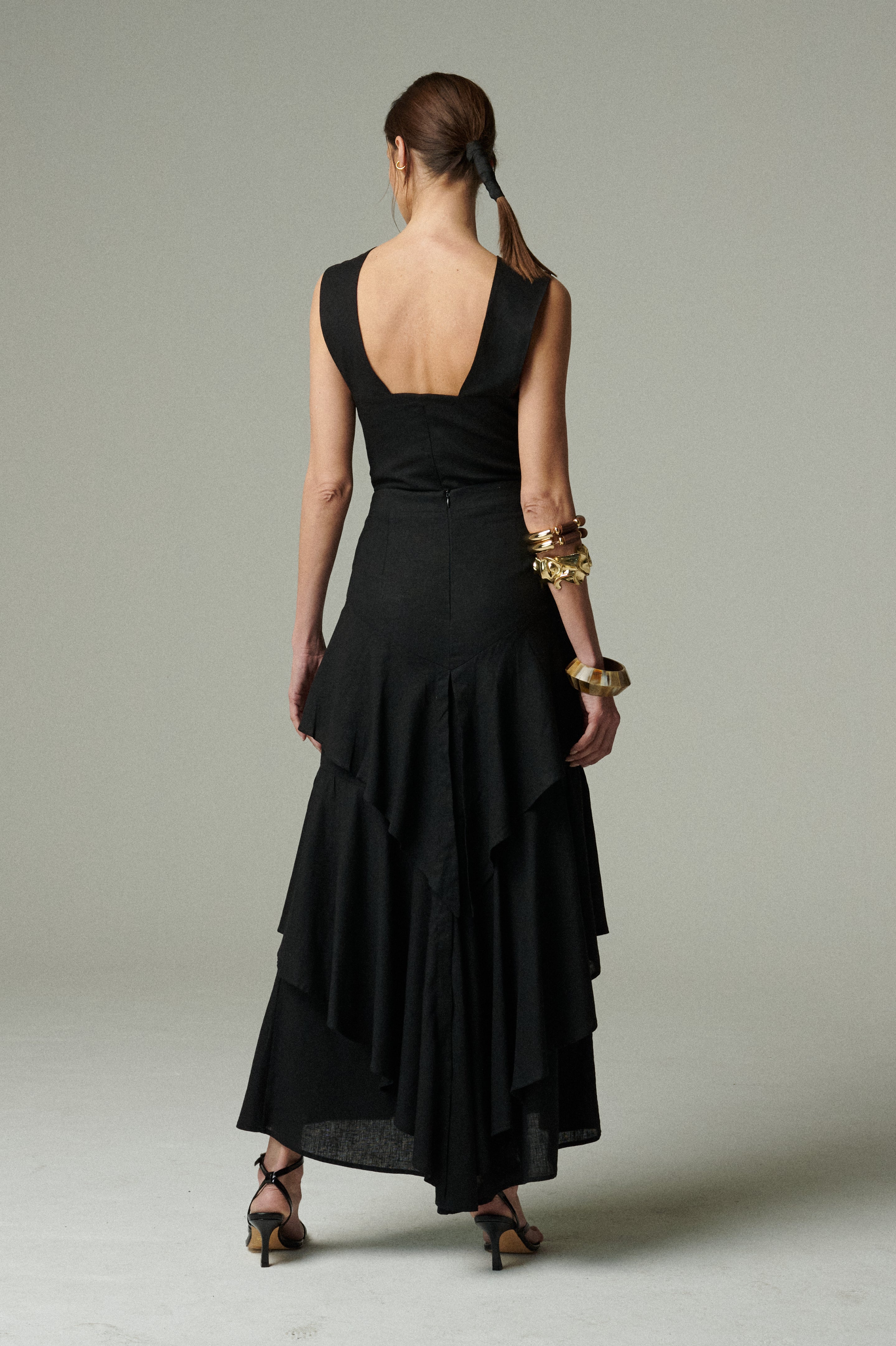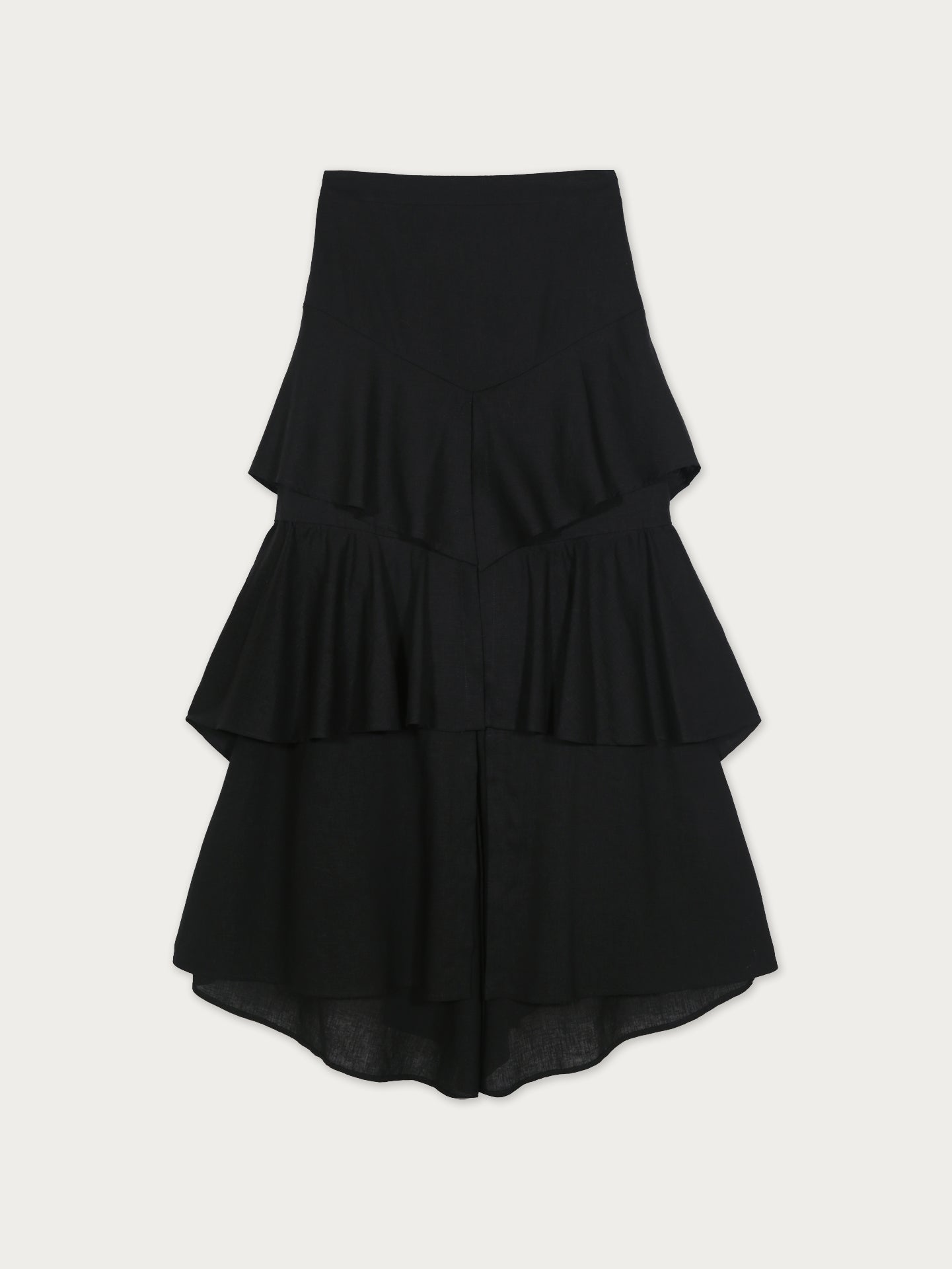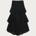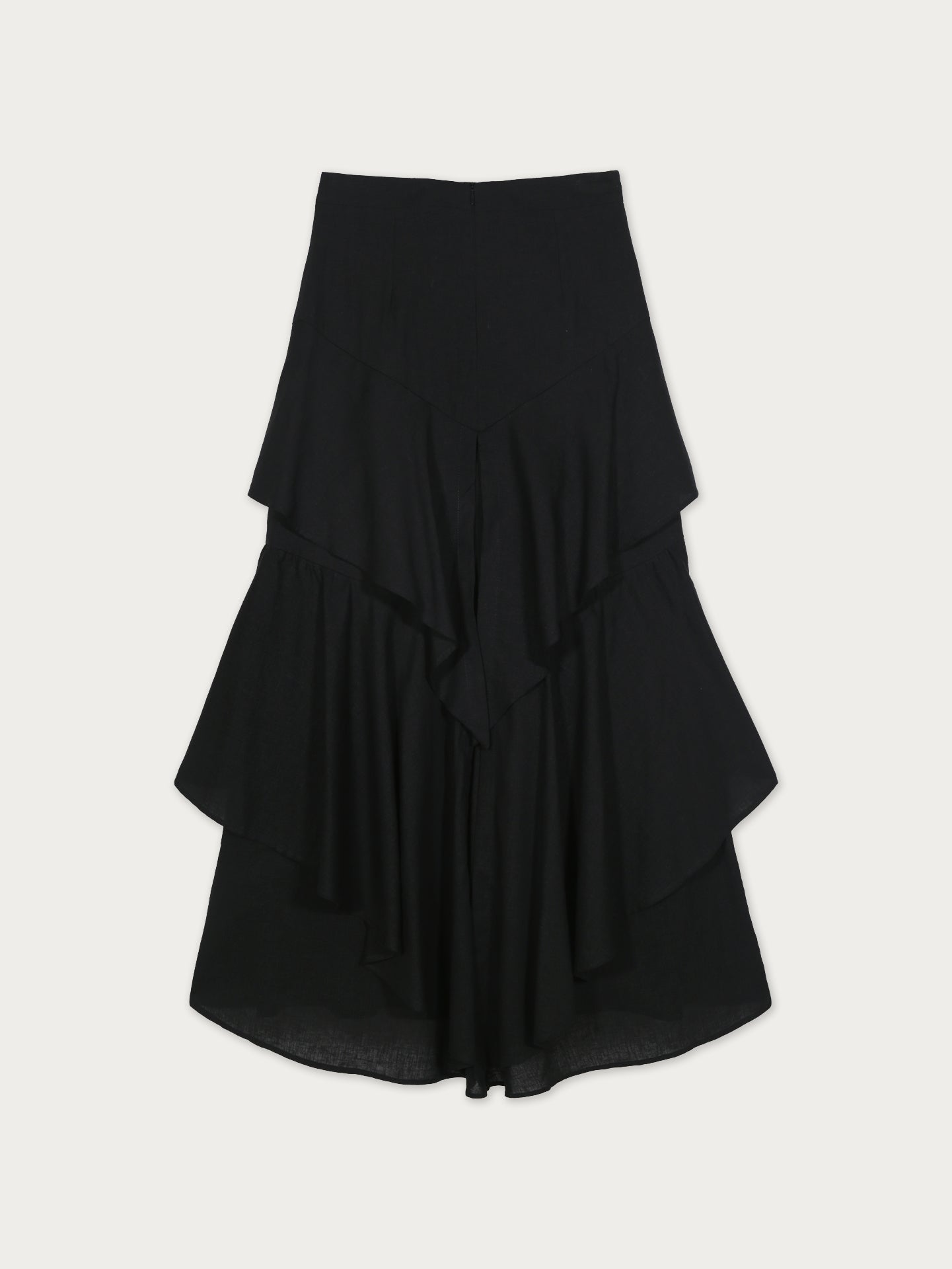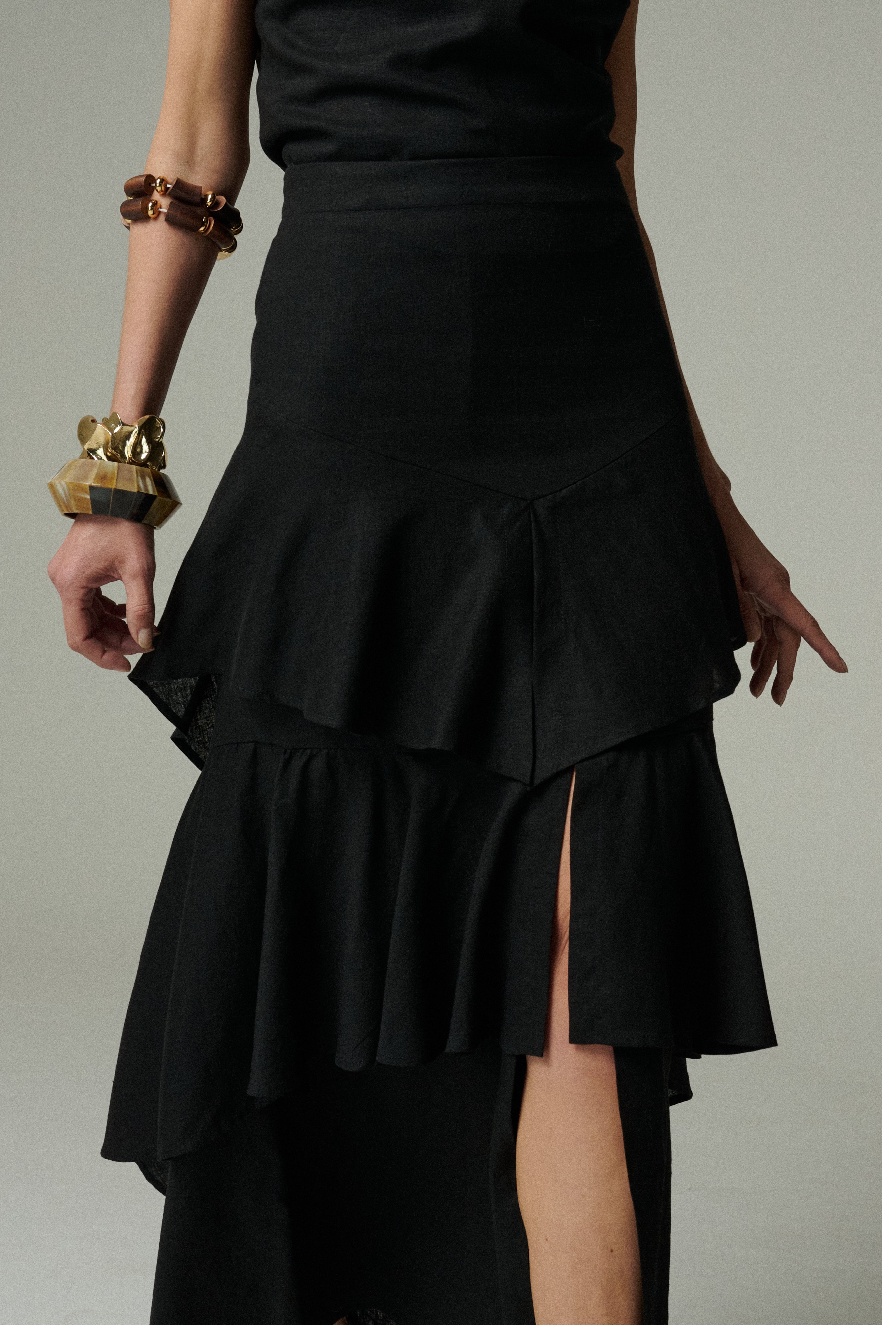 Nuestra Pollera Pisa, confeccionada en lino negro, es una prenda estrella de la temporada. Su diseño destaca por su soltura y movimiento. Las capas aportan carácter y ligereza, logrando una silueta fluida y elegante. Una prenda fresca y versátil, ideal para destacar en looks de verano o elevar un estilo cotidiano.