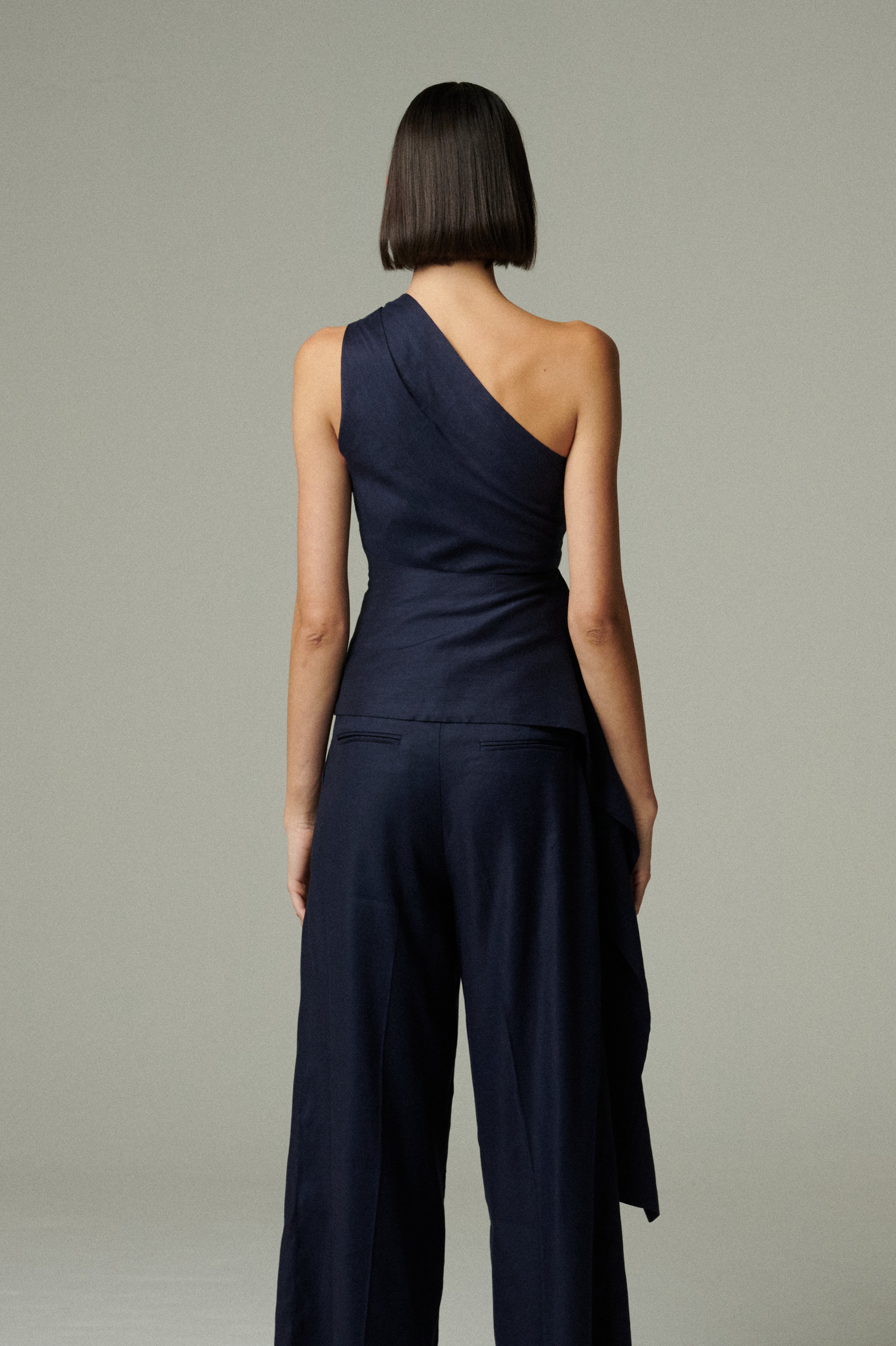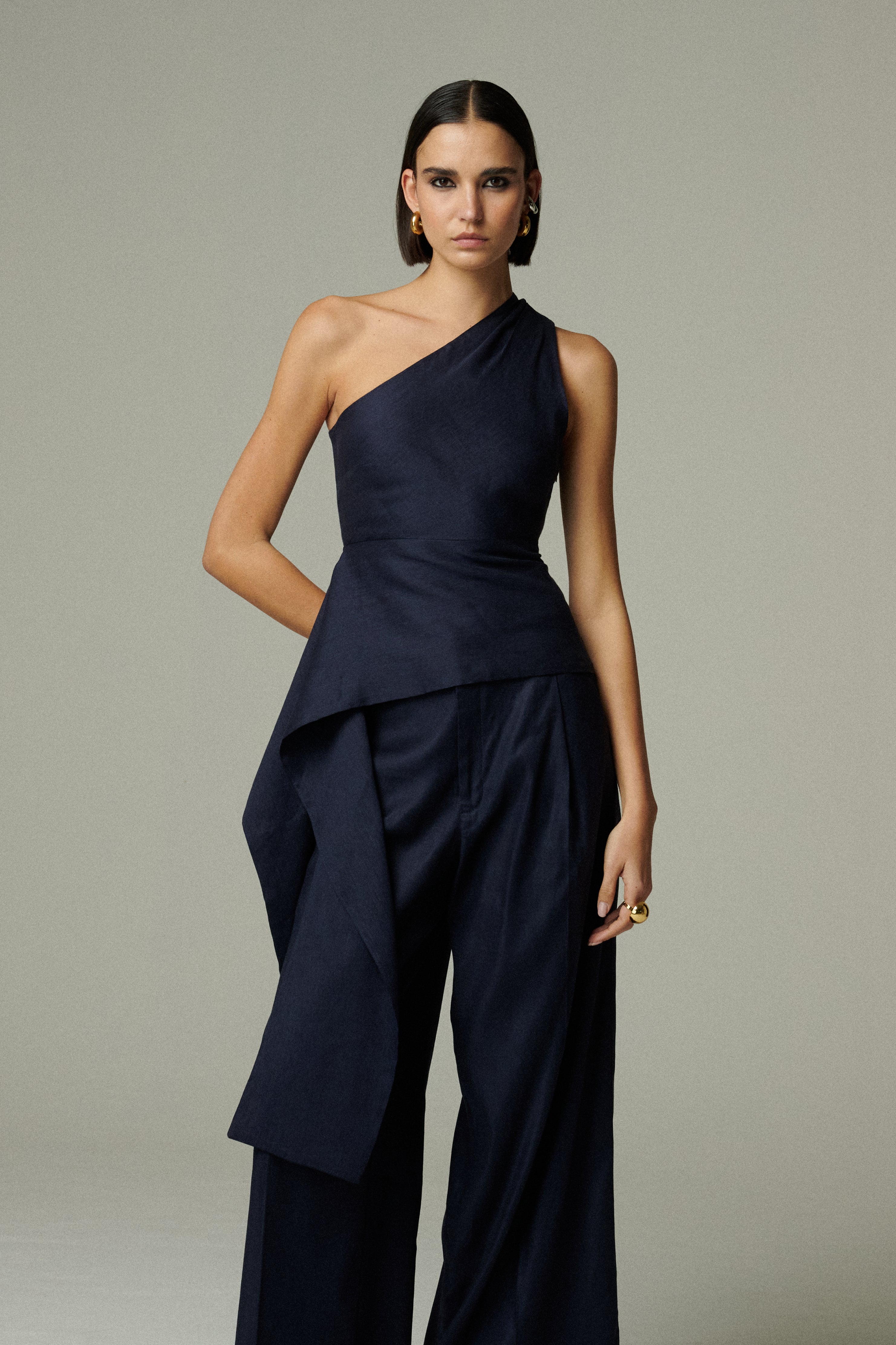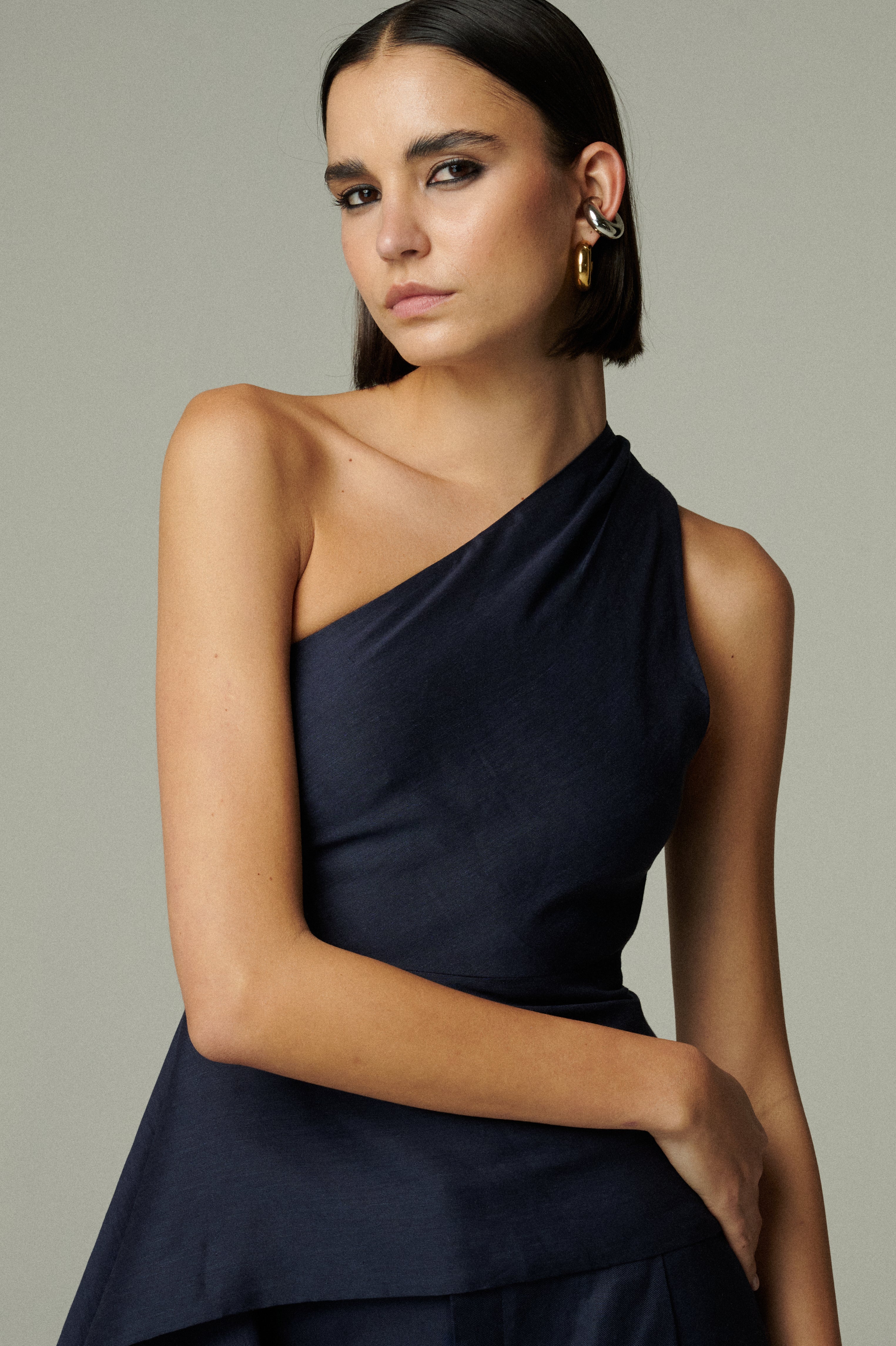 La Blusa Toledo confeccionada en 100% lino azul Italiano, combina elegancia y modernidad en una silueta única. Su diseño asimétrico con un hombro descubierto aporta un toque sofisticado y actual, mientras que el ajuste en la cintura estiliza la figura para luego caer de forma suelta y fluida. Una prenda versátil que puede elevar un look cotidiano o ser la elección perfecta para un evento especial.
