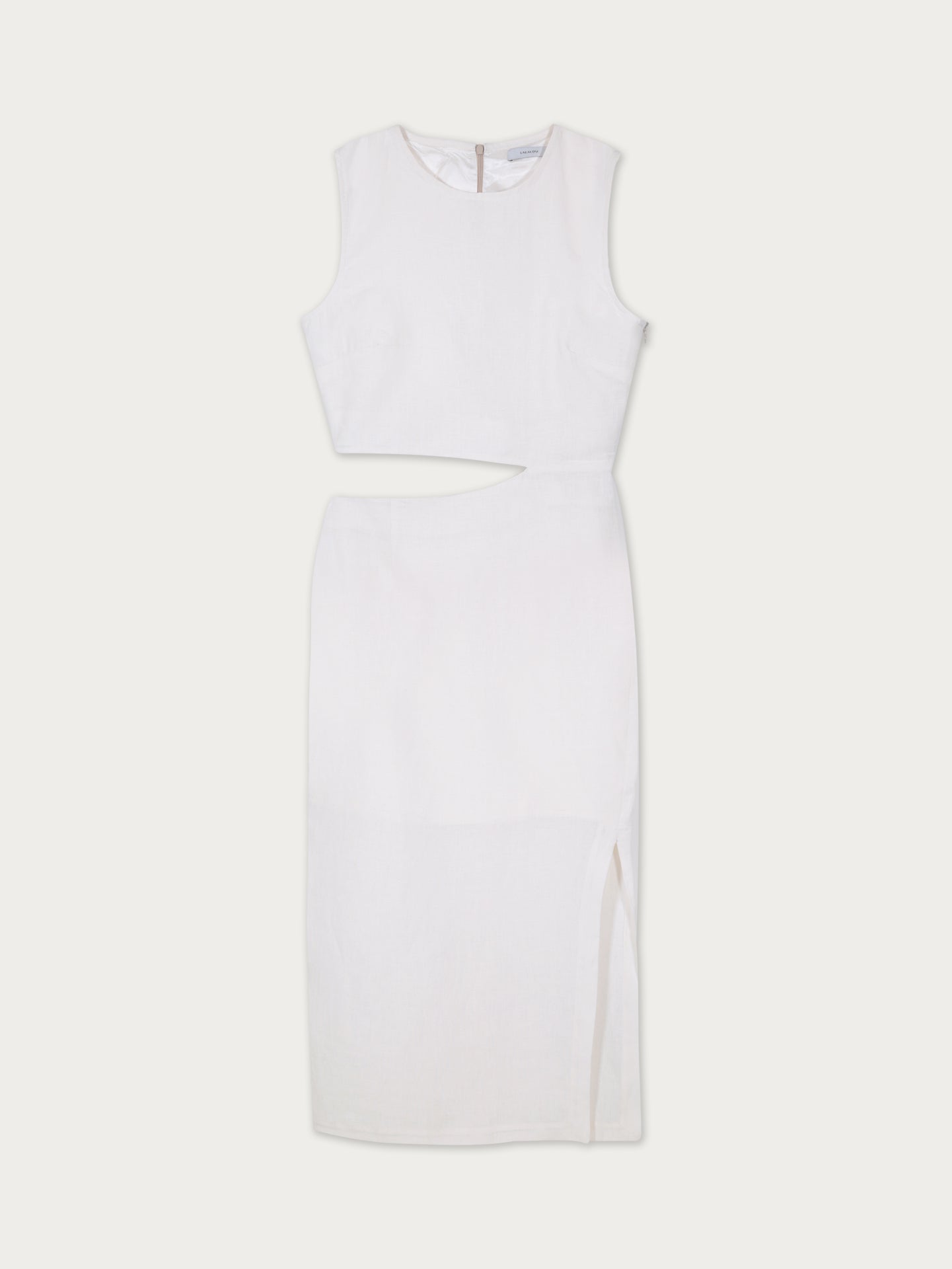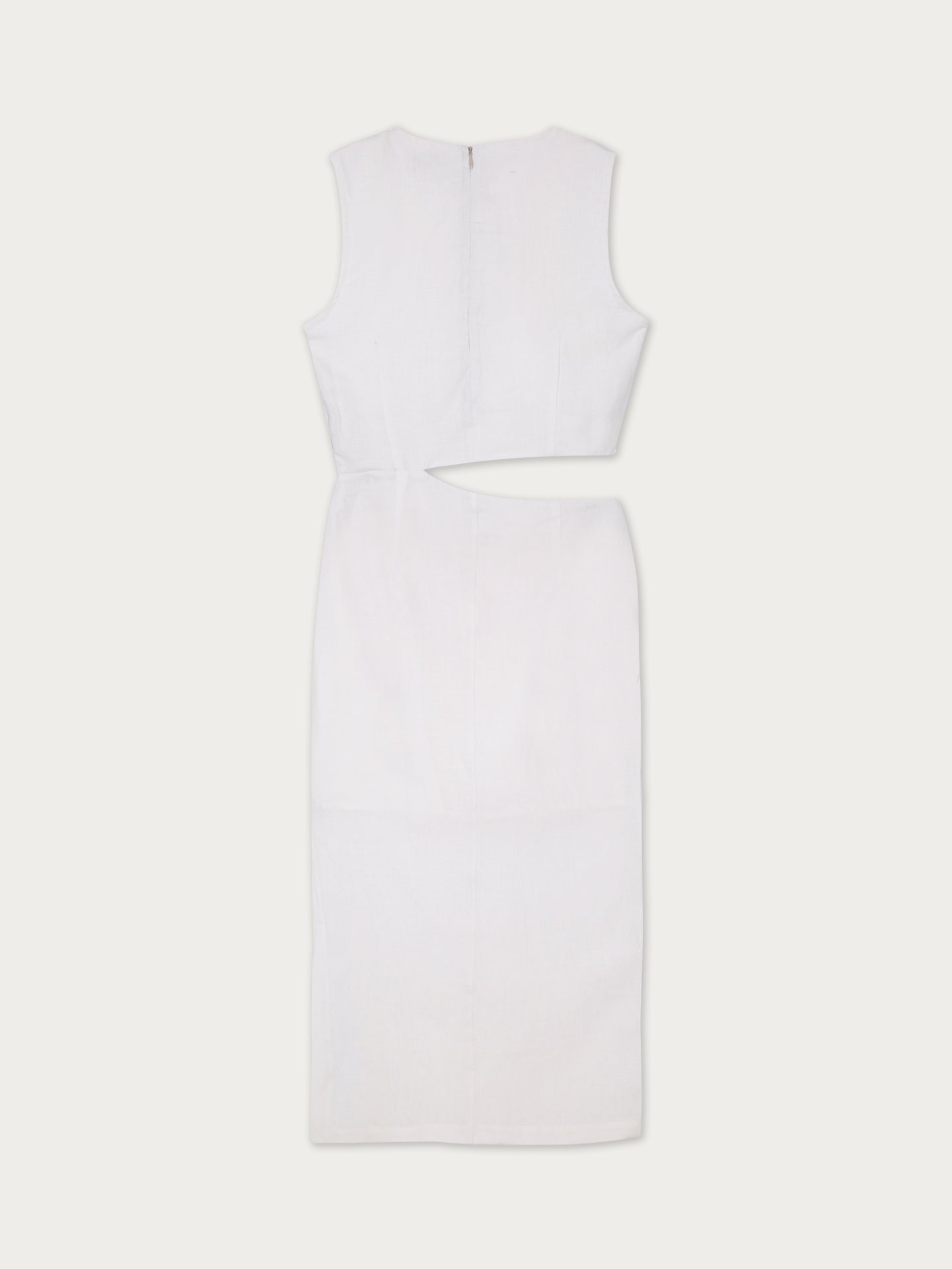 Nuestro Vestido Córcega, confeccionado en 100% lino blanco, es una propuesta que juega con contraposiciones. Por un lado, la geometría en su corte asimétrico del torso. Por otro lado, la soltura y movimiento del material. Así, la forma y el material se encuentran en una silueta contemporánea y sofisticada.